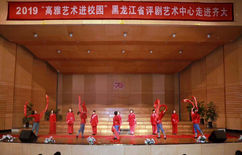 10月16日下午,2019年“高雅艺术进校园”黑龙江省评剧艺术中心走进齐大专场文艺演出在我校音乐厅举行。省评剧艺术中心的40余名演职人员,用他们的精湛技艺为我校师生送来了一场高水平的国粹艺术盛宴。我校1000余名师生共同欣赏了演出。