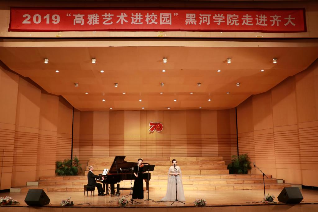 10月23日19时,2019年“高雅艺术进校园”黑河学院专场演出在我校音乐厅隆重举行。黑河学院工会副主席卢丽艳、音乐学院院长徐卫,我校宣传部、工会、团委、音乐与舞蹈学院的领导与1000余名师生观看了演出。