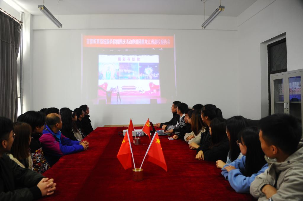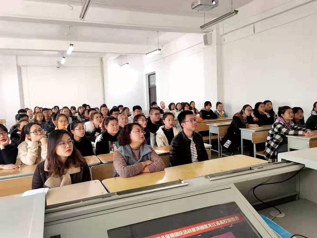 11月8日上午,由省委教育工委、省教育厅协办,黑龙江大学承办的首都教育系统服务保障国庆活动宣讲团黑龙江省高校报告会在黑龙江大学举行,为进一步激发爱国热情,在“不忘初心、牢记使命”主题教育中,加强爱国主义教育,弘扬爱国主义精神,11月7日,校党委宣传部向各二级党委、直属党支部发出了《关于组织收看首都教育系统服务保障国庆活动宣讲团黑龙江省高校报告会网络直播的通知 》,我校师生积极响应,通过电视、网络、手机客户端等多种形式同步收看了报告会网络直播。