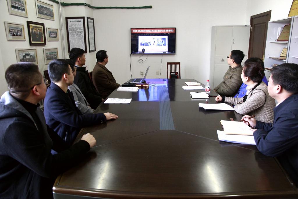 我校宣传部-统战部联合党支部全体党员在机关办公楼三楼统战活动室同步收看了报告会网络直播。