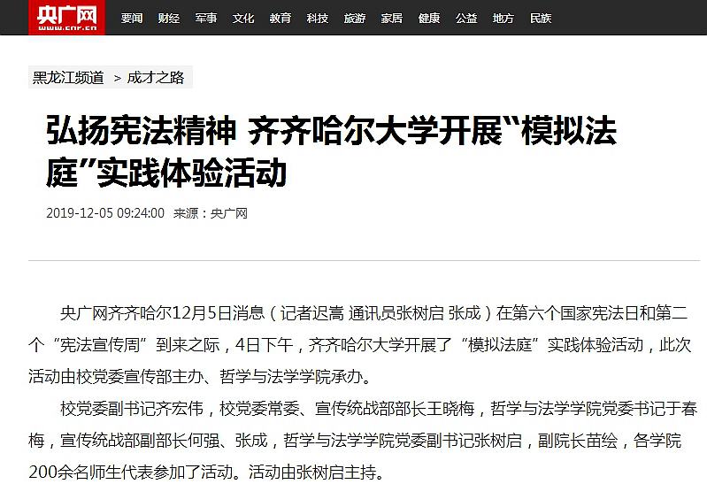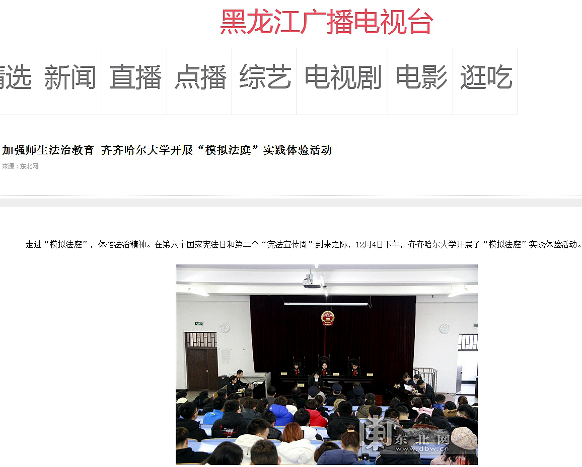 2.黑龙江广播电视台:加强师生法治教育齐齐哈尔大学开展“模拟法庭”实践体验活动