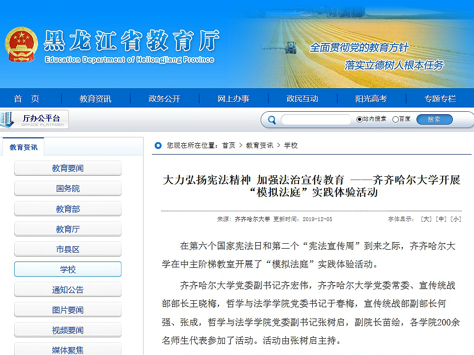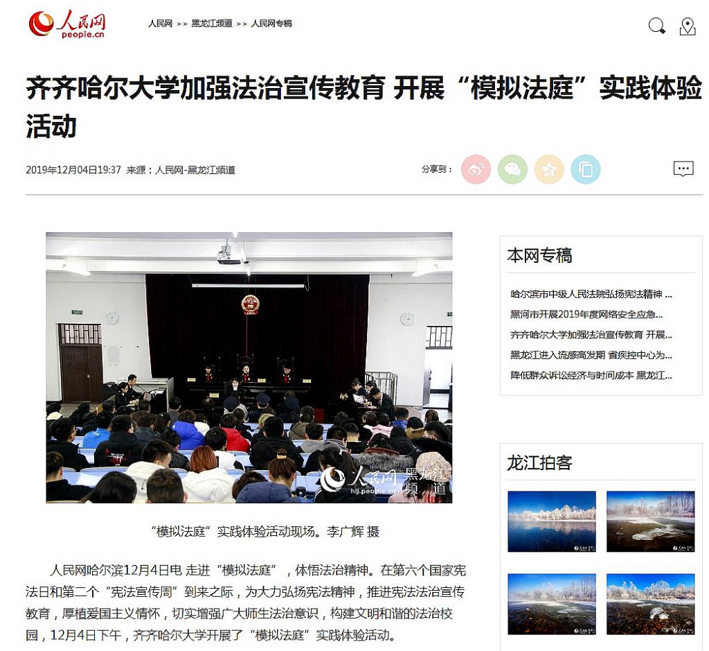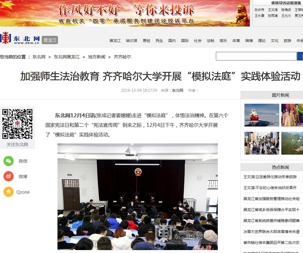 1.东北网:加强师生法治教育齐齐哈尔大学开展“模拟法庭”实践体验活动