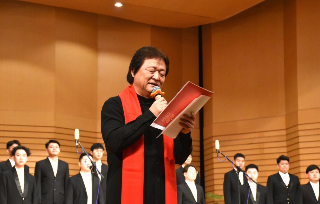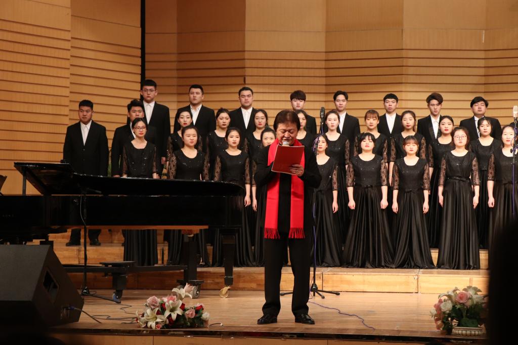 年末之际,喜迎新春。值此辞旧迎新之际,齐齐哈尔大学合唱团和齐齐哈尔市教师合唱团用精彩的演出为鹤城人民献上了“美妙和声”的饕餮盛宴。本场音乐会由音乐与舞蹈学院年轻教师---毕业于莫斯科国立师范大学的张军博士携音乐与舞蹈学院合唱指挥专业研究生张彤、冯兴玉、赵鸾宇共同担任指挥,音乐与舞蹈学院名誉院长孙相根教授对演出作品进行了作品解析。