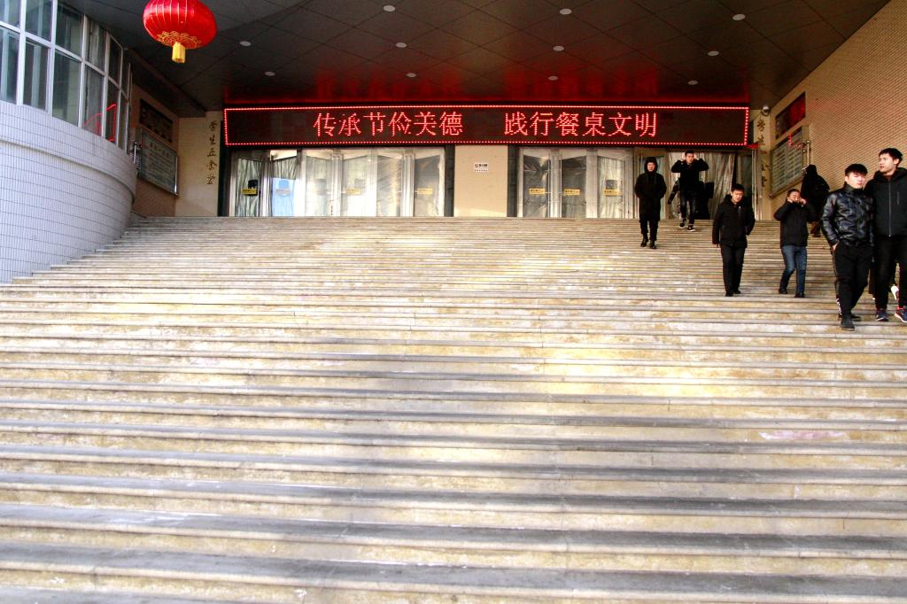 一直以来,在我校学生食堂就餐大厅内,随处可见“文明用餐、珍惜粮食、杜绝浪费”等标语、贴画和条幅,就餐环境干净整洁,氛围温馨。学生们在就餐窗口有序排队,按需打餐,安静就餐,文明交流,师生自我教育、自我管理、自我监督的良好风气已蔚然成风。