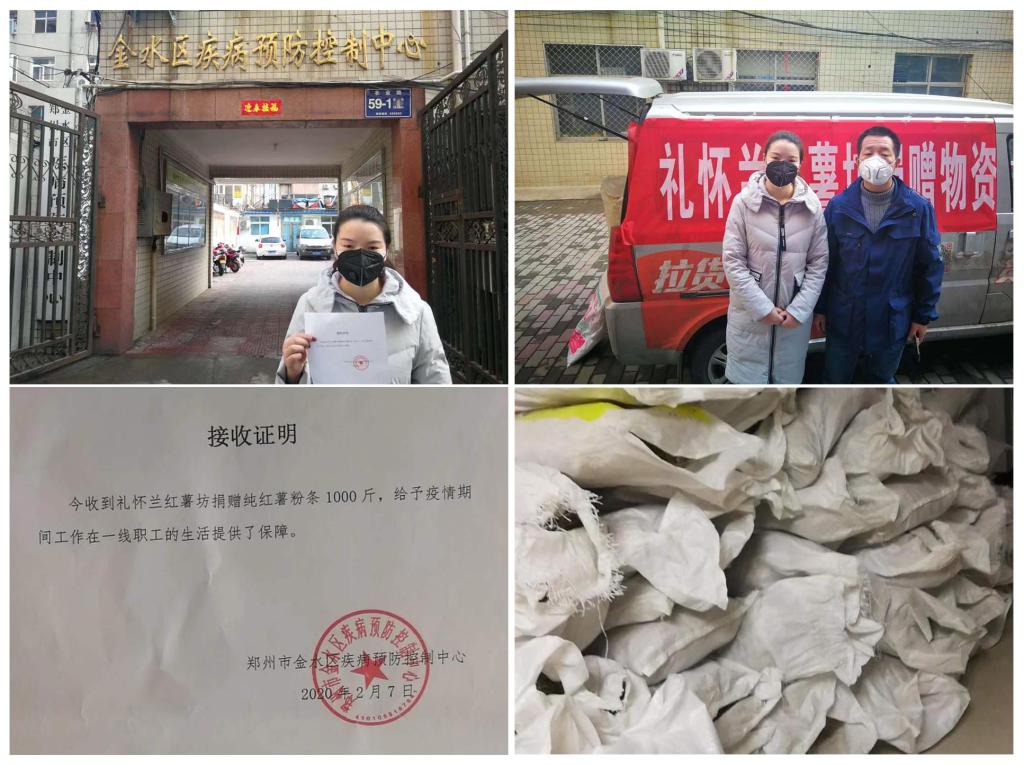 张晶晶为一线医护人员捐赠粉条的想法得到了父亲的肯定和支持。2月7日下午,她来到郑州市金水区疾病预防控制中心,将一千斤的红薯粉条交到了疾控中心主任王锡钢手上。她尽己所能关心医护人员,热心抗疫事业的善举感动了捐赠现场的每一个人。当王锡钢主任代表抗疫一线医护人员向她及家人表示感谢时,张晶晶说“反了反了!应该是我们谢谢一线的逆行者保卫我们!身体是革命的本钱,希望医护人员吃饱吃好,早日消灭病毒平安凯旋归来!”