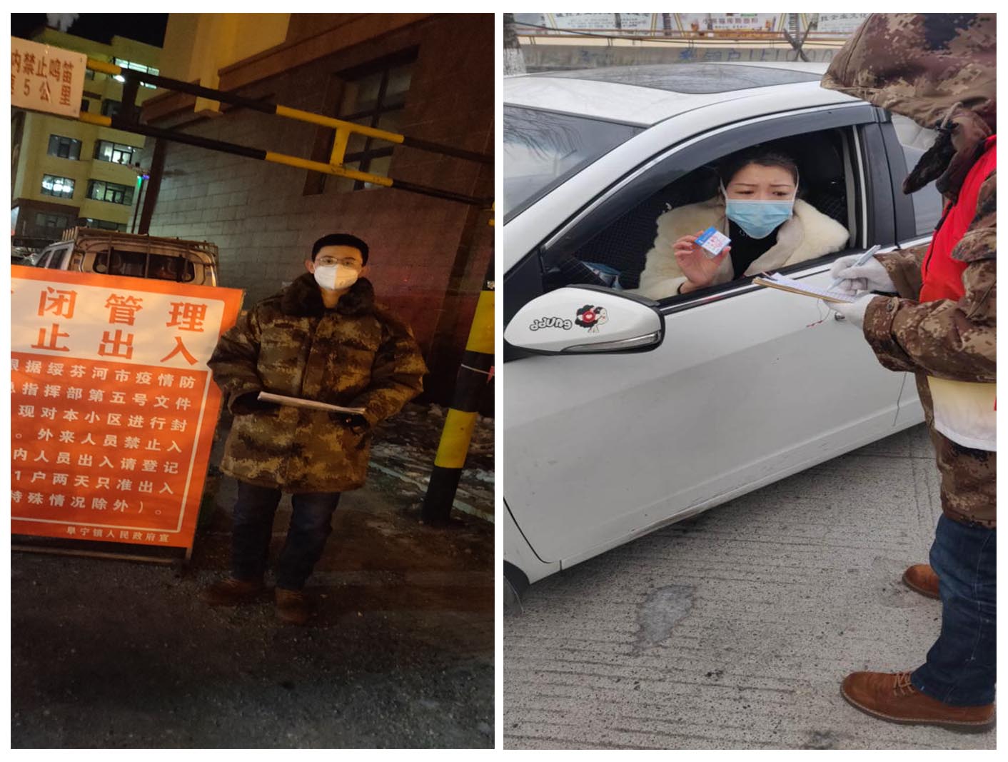 生物技术181班的孙晨家住在绥芬河市,2016年他曾应征入伍是一名退役军人。2月6日下午,孙晨在绥芬河市退伍兵群里看到了市退役军人事务局发出的退役军人志愿服务队召集令,便第一时间同退役军人事务局联系,加入到了社区志愿服务的队伍中。孙晨每天志愿服务8小时,上午两个小时,下午两个小时,夜晚4个小时,直到凌晨!他不畏严寒,对出入小区业主进行测温登记,做到来车、来人必查,严控外来车辆及人员入内,同时,还组织5名居民志愿者到小区门口参与执勤。孙晨说:“离军不离党,退伍不褪色,疫情就是命令,防控就是责任。作为一名当代大学生,更作为一名退役军人,哪里有需要,哪里就会有退役军人志愿者的身影,在疫情面前,我要用实际行动为党旗增辉,为军旗添彩。”