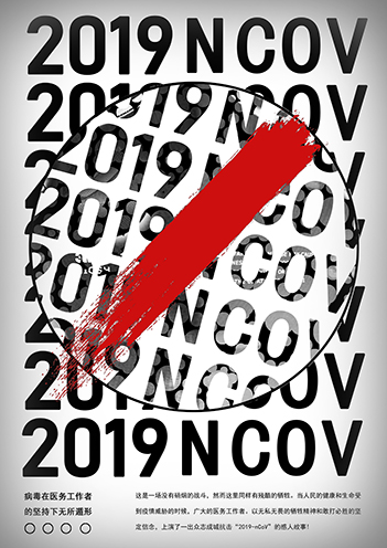 设计简介:运用几何图形组成一个抽象的武汉字体为中心,画面纹理设计有如战场一般的视觉感受,红和蓝相融合的背景代表着火与雷电,寓意着战胜疫情。