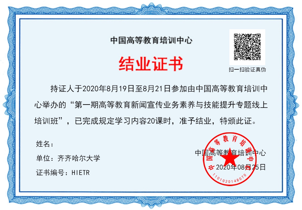 为深入学习贯彻党的十九大精神和习近平总书记关于新闻舆论工作的重要讲话精神,进一步加强学校新闻宣传和舆论引导,顺应媒体融合与新媒体蓬勃发展的态势,推动学校宣传人才队伍建设,提高新媒体运用能力,做大做强新时代教育主流舆论,8月19日—21日,学校党委宣传部牵头组织全校宣传工作队伍参加了由中国高等教育培训中心举办的“第一期高等教育新闻宣传业务素养与技能提升专题线上培训班”的培训。