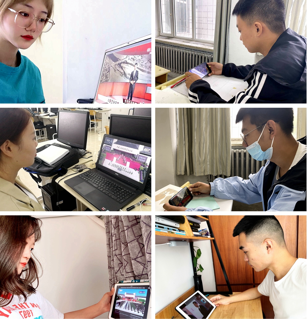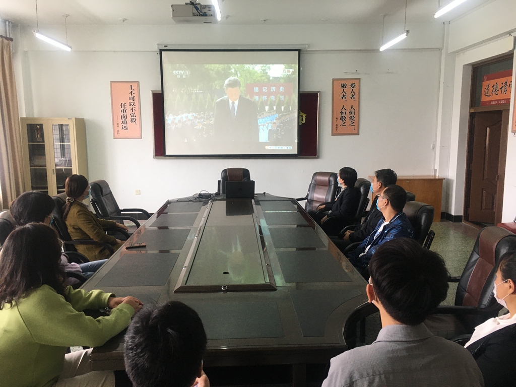 中央广播电视总台对中国人民抗日战争胜利75周年向烈士敬献花篮仪式进行了现场直播,我校各党委、直属党支部组织师生员工在会议室、办公室、教室、寝室和自己家中等地点通过网络观看了仪式直播。