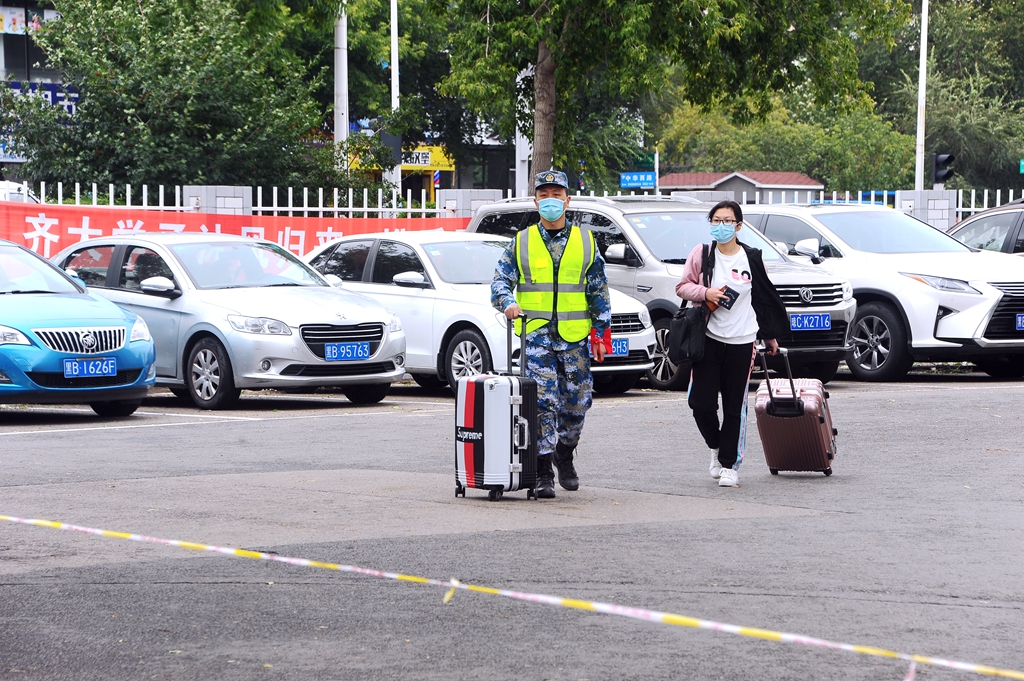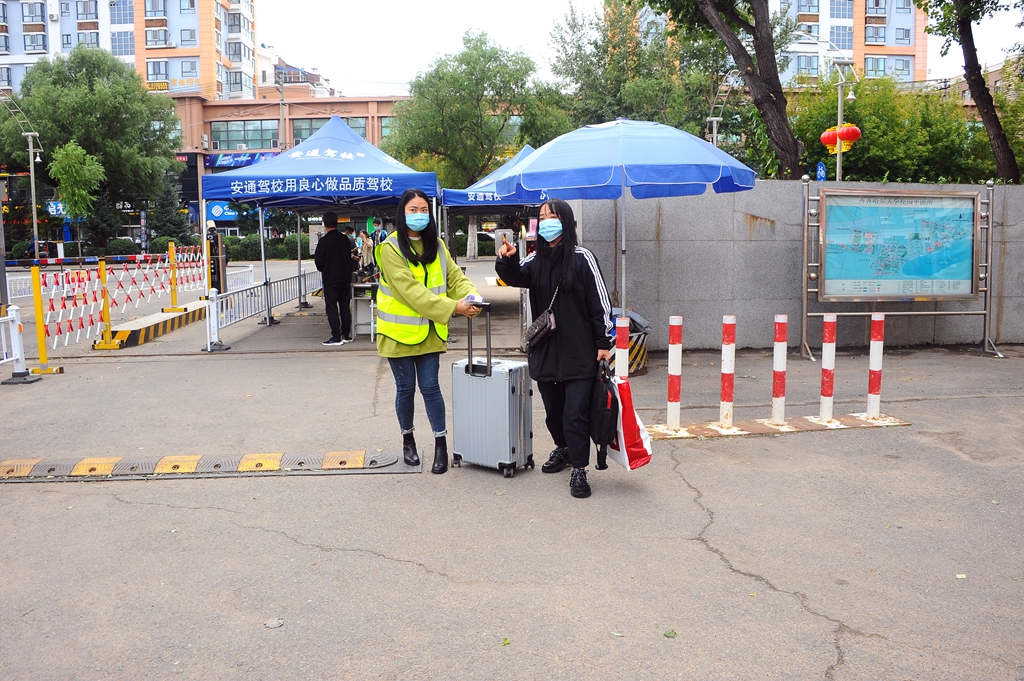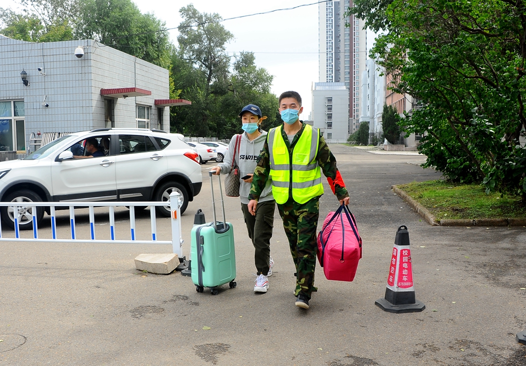 5日早上,首批返校学生志愿者们从7:30开始全部进入工作状态,在每个学院的接待点都能看到他们忙碌的身影。其中,由退役大学生士兵们组成的志愿服务队伍统一身穿“绿马甲”,有序地开展志愿服务工作,及时做好第二批返校报到同学的扫码测温、方向指引、行李搬运和沟通协调等工作,“绿马甲”们忙碌的身影穿梭在中区西门和东区北门两个入口,成为我校第二批返校同学报到期间校园中的一道亮丽的风景线。