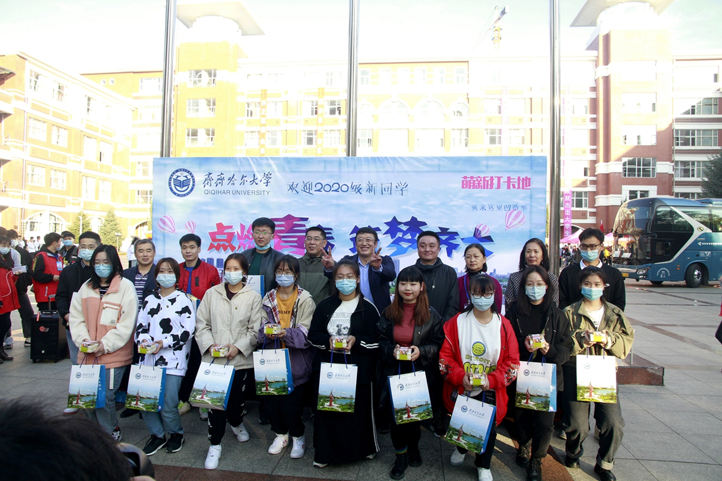 当报到日遇上生日,很多人都别无选择,只能在忙乱中选择让喜庆的生日匆匆略过。为了让2020级新同学切实感受到来自学校的关怀和惦念,10月10日下午15:15分,在2020级新生入学报到的第一天,学校在中区广场为恰逢报到当天过生日的13位2020级新同学举办了集体生日会,以这种暖心的方式欢迎他们加入齐齐哈尔大学温暖的大家庭。