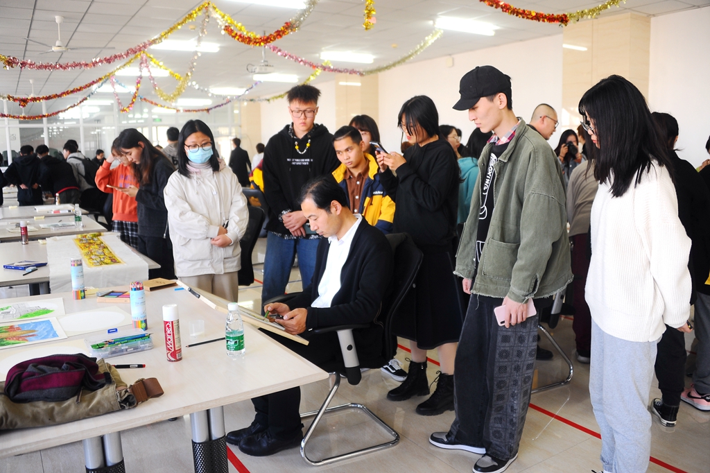 活动中,来自绘画系的15名教师进行了现场作画,现场师生观众们根据自己的兴趣爱好流动性地进行了观看学习或者现场临摹,并与创作老师互动交流。