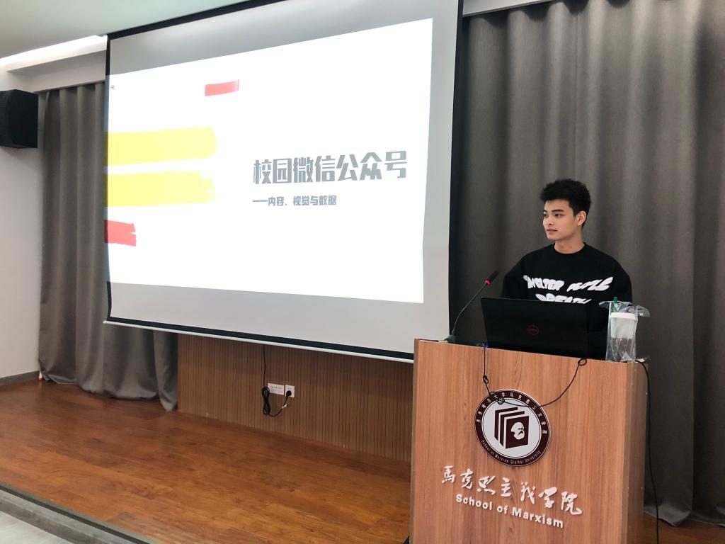 随着自媒体时代的到来,使用微信、阅读公众号已经成为我们工作生活中获取信息的重要来源。11月18日16:00,18级播音主持专业刘露文同学受学校党委宣传部的邀请,在马克思主义学院二楼多媒体会议室,为负责校内新媒体矩阵运营师生做了一场《如何运营校园微信公众号》的专题讲座。