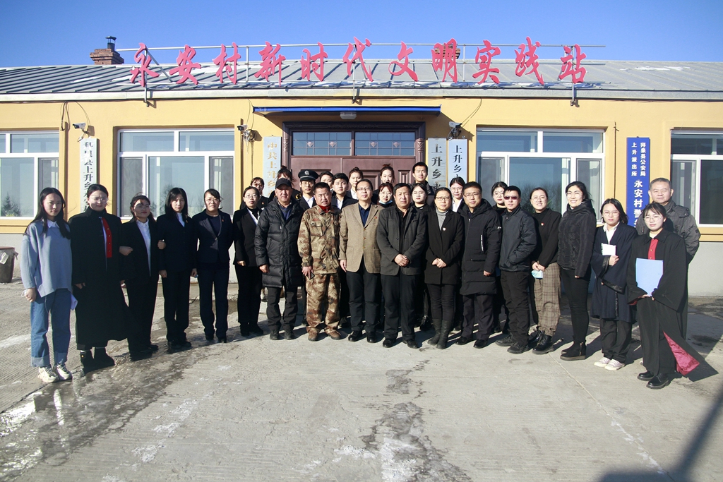 为深入学习贯彻习近平法治思想,深化新时代文明实践中心共建共育,落实《关于印发<齐齐哈尔大学与拜泉县新时代文明实践中心、拜泉县上升乡永安村新时代文明实践站结对共建方案>的通知》(齐大办(党)字〔2020〕6号)的文件精神,在第七个“国家宪法日”即将到来之际,11月28日,哲学与法学学院党委书记于春梅,校党委宣传部副部长何强,哲学与法学学院副书记张树启,带领哲学与法学学院30余名师生,前往拜泉县上升乡永安村开展习近平法治思想宣传、法律援助等活动,大力弘扬宪法精神。