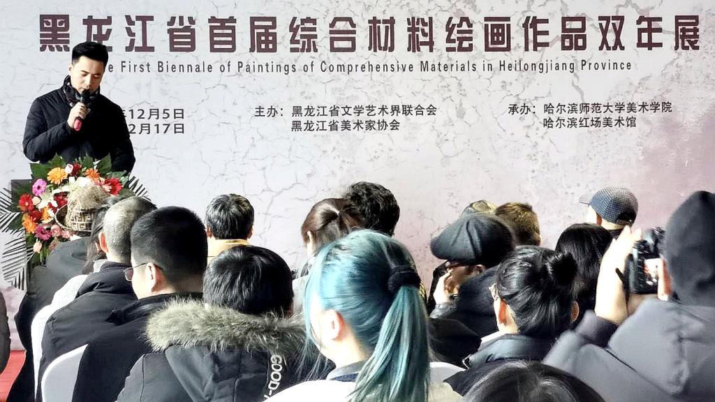 12月5日,“黑龙江省首届综合材料绘画作品双年展”在哈尔滨红场美术馆开幕。本次活动由黑龙江省文学艺术界联合会、黑龙江省美术家协会主办,哈尔滨师范大学美术学院、哈尔滨红场美术馆承办。
