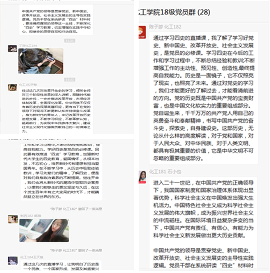 我校师生积极收听收看了“四史学习教育·微领学”网络直播课堂,大家纷纷表示,通过本次网络直播课的学习,深刻理解认识到了“四史”学习的重要意义,在今后的学习和工作中会以史为鉴、砥砺前行,不忘初心、牢记使命,不断增强对共产党执政规律、社会主义建设规律、人类社会发展规律的认识和把握,切实补足精神之钙、把稳思想之舵,坚定对马克思主义一以贯之的信仰,对中国特色社会主义矢志不渝的信念,对实现中华民族伟大复兴坚定不移的信心,时刻明确努力前进的方向,谨记实现中华民族伟大复兴中国梦的历史使命,承担起党和人民赋予的历史重任,以实际行动迎接建党100周年。