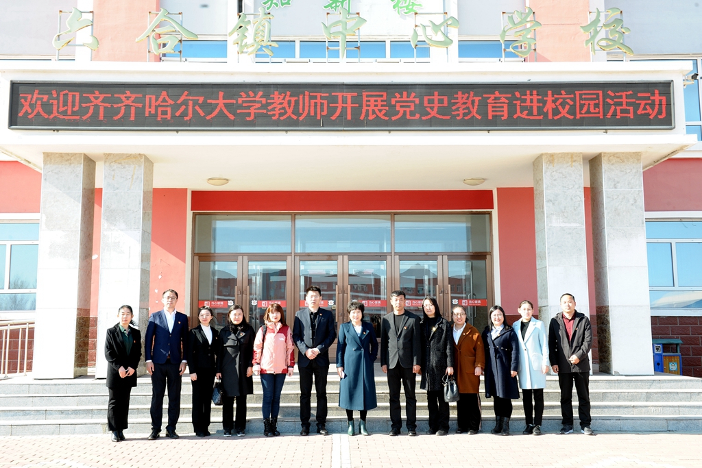 为庆祝中国共产党建党100周年,深入学习贯彻习近平总书记在学校思想政治理论课教师座谈会上的讲话精神,贯彻落实《关于在全党开展党史学习教育的通知》要求,以及中共中央办公厅、国务院办公厅印发的《关于深化新时代学校思想政治理论课改革创新的若干意见》的文件精神,创新习近平新时代中国特色社会主义思想进教材、进课堂、进头脑模式,推动大中小学思政课一体化建设,切实开展好“我为群众办实事”实践活动。4月14日下午,马克思主义学院青年教师读书会来到讷河市六合中心学校开展党史故事进校园活动——“大手拉小手,同心跟党走”党史学习教育“四个一”主题班会。讷河市团市委书记高岳、六合中心校校长李秀梅、我校马克思主义学院领导和青年教师读书会成员一同参加了活动。