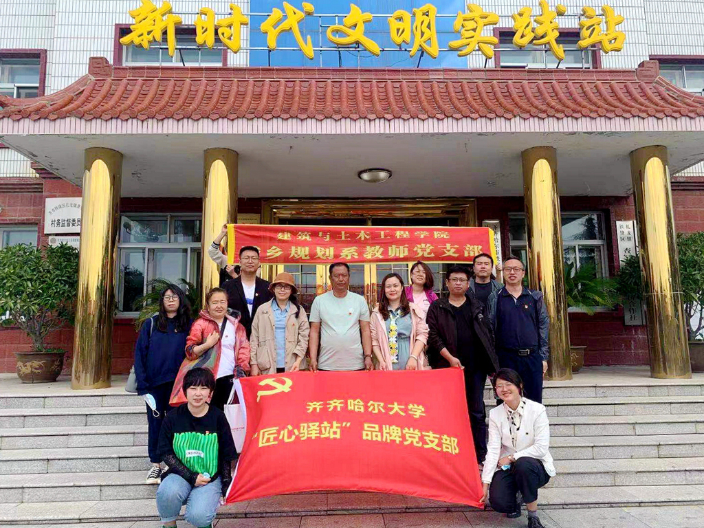 践行服务初心使命,弘扬匠心精神。为巩固党史学习教育成果,践行“匠心驿站”品牌支部成立初心,支部开展服务育人、服务社会志愿服务活动。结合城乡规划专业实际情况,党支部发挥引领示范作用、每学期都至少开展一次“教师党员为学生”的服务活动,也会带领师生参与到村镇的规划设计、工程实践中去,实现匠心情怀。自2017年起,支部党员教师开始带领学生参加村镇规划调研、助力美丽乡村建设等志愿服务共7次,涵盖8个村镇,参与师生100余人。实践成果前后获得2019年全国大学生村庄规划编制志愿服务活动优秀实践成果二等、2021届“挑战杯”黑龙江省大学生课外学术科技比赛一等奖等5项荣誉。2021年8月份,中国建材报发表了以《齐齐哈尔大学建筑与土木工程学院—教学与思政相得益彰》为题的文章,对支部建设工作表达出了肯定与期待,文章被“新华网”“今日头条”“网易新闻”“搜狐新闻”“学习强国”等多个公众媒体平台转载,支部开展的活动得到了社会的广泛认可。