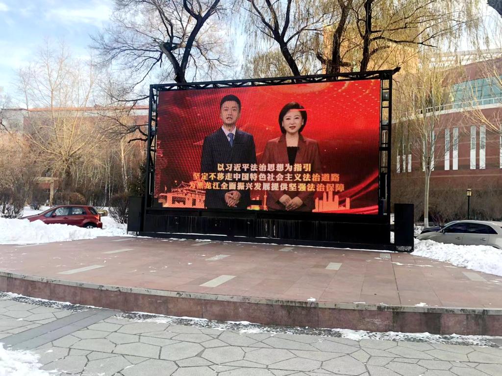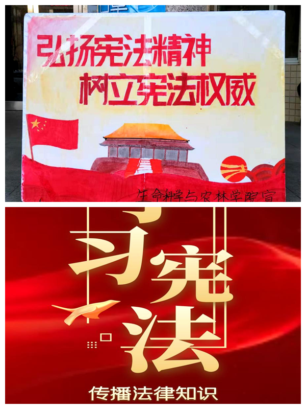宣传部在“三致广场”播放宪法活动宣传周视频,各学院通过制作宣传板报、宣传标语营造宣传氛围。