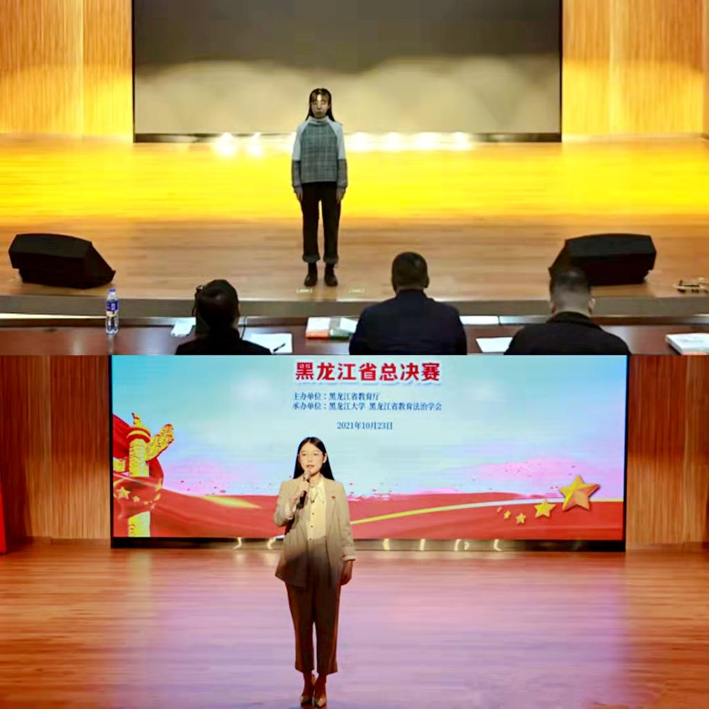 致知力行,踵事增华。为促进全校师生知宪法于心,守宪法于行,校团委多年坚持把宪法学习宣传作为一项重要政治任务常抓不懈,按照省教育厅《关于组织参加第六届全国学生“学宪法讲宪法”活动的通知》要求,精心组织学宪法、讲宪法演讲比赛,引导学生把宪法学习宣传和身体力行结合起来,在校园中形成知行合一的良好氛围。9月1日至9月30日,校团委通过线上和线下相结合的方式,组织开展了“学宪法 讲宪法”知识竞赛和演讲比赛系列活动。经过遴选,我校推荐两位在校内比赛中脱颖而出的哲学与法学学院的齐旗同学、外国语学院徐嘉同学赴哈尔滨市参加全省决赛。决赛于10月23—24日在黑龙江大学举行,大学组全省共有54名选手参加。经过激烈角逐,齐旗同学荣获知识竞赛高校组“二等奖”,徐嘉同学荣获演讲比赛高校组“三等奖”。