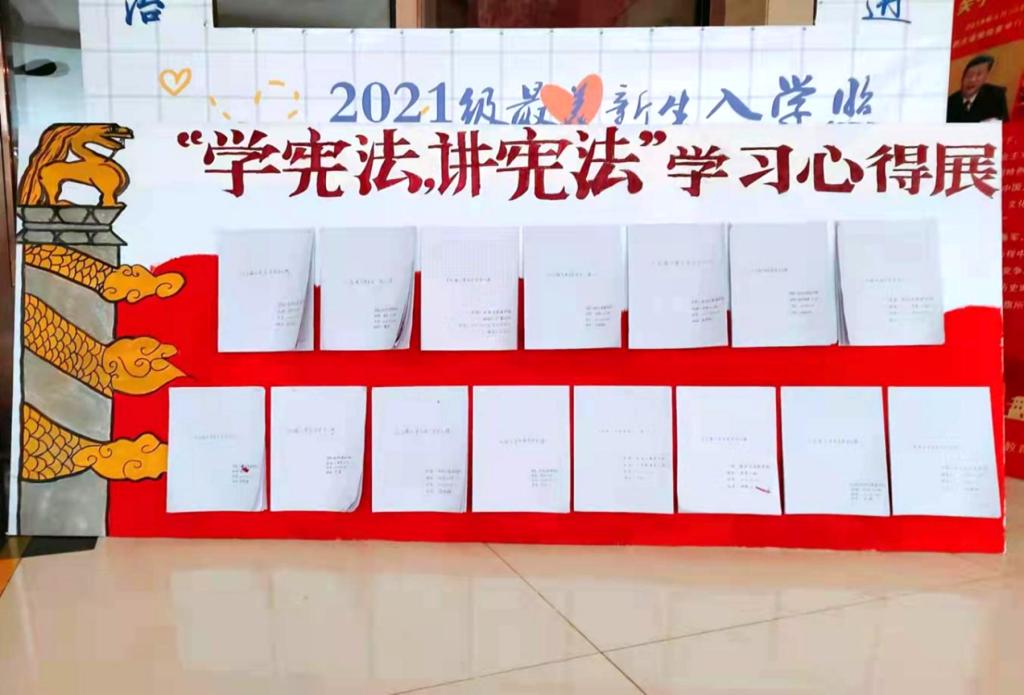 勤学善思,明辩笃行。法治中国意识正在深入人心,自觉守法也逐渐成为人们的共识,做为未来建设者的大学生更应该善于学习,善于总结,成为新时代的学法、守法、用法的榜样。经济管理学院为确保宪法精神入心田,在逸夫楼一楼大厅举办了学习宪法心得展,经过初评、复评、终评,将优秀作品进行展览,营造学宪法讲宪法的良好范围,厚植法治根基,让宪法精神在全体师生中落地生根。