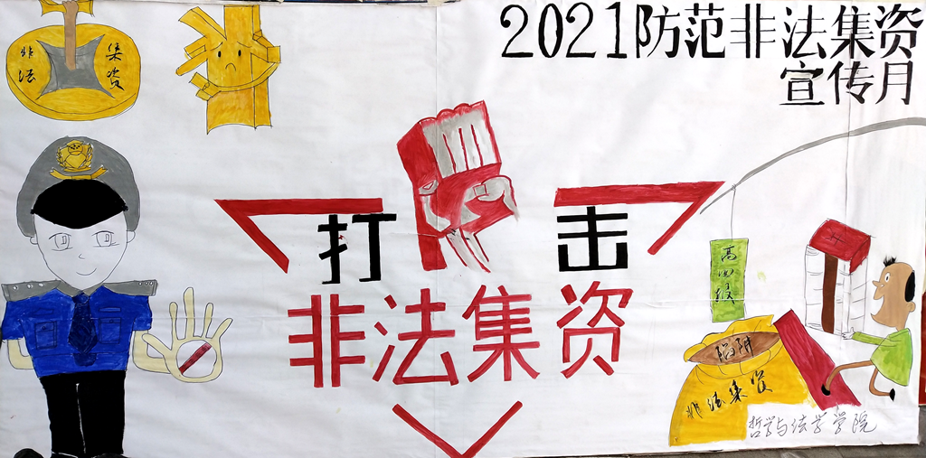 6月11日至22日,学校开展2021年度防范非法集资宣传月教育活动。宣传部、学生工作部(学生处)等部门采取集中宣传与分层次宣传两种形式,加大《防范和处置非法集资条例》普法和防范非法集资的宣传教育力度,加强风险警示,引导理性维权,营造了浓厚的和谐校园氛围。