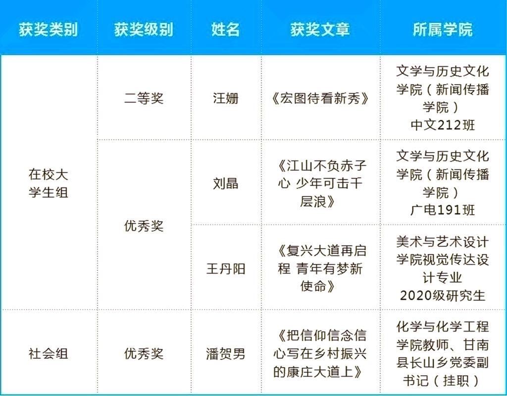 附:黑龙江省“强国复兴有我”主题征文活动获奖作品名单(在校大学生组、社会组)