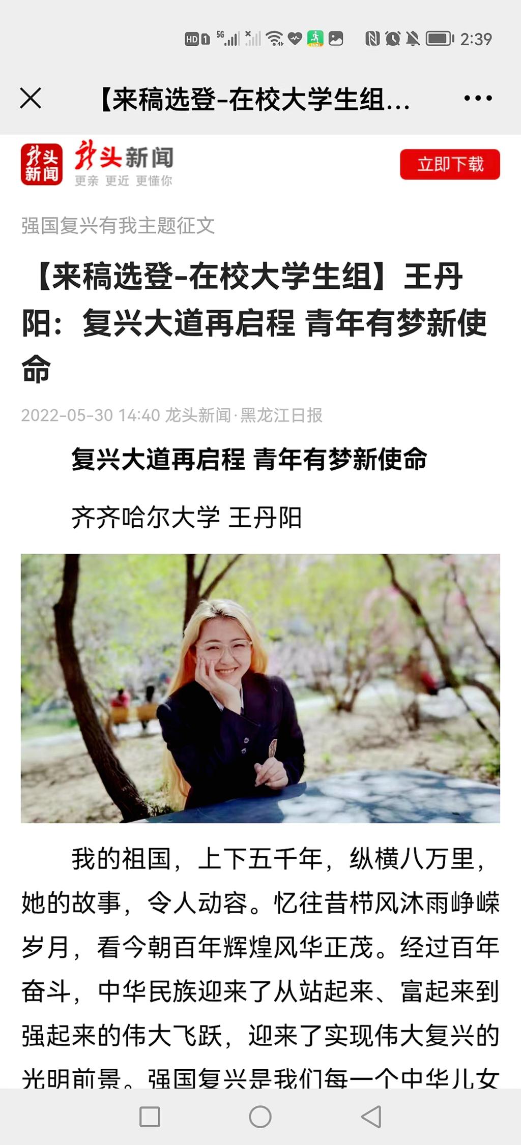 12.王丹阳 《复兴大道再启程 青年有梦新使命》 齐齐哈尔大学