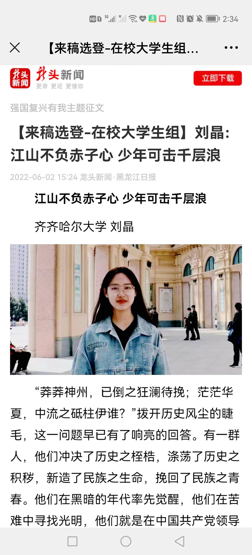 3.刘晶 《江山不负赤子心 少年可击千层浪》 齐齐哈尔大学