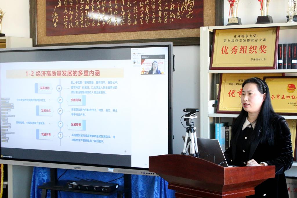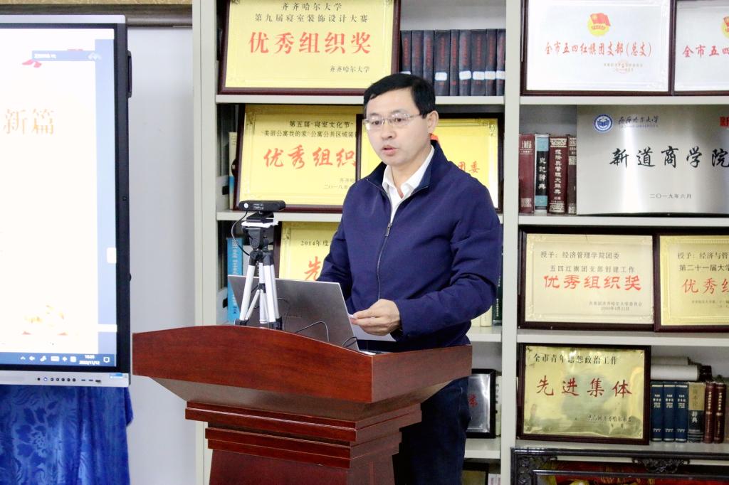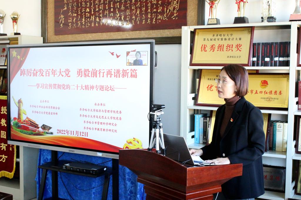 为深入学习宣传贯彻党的二十大精神,进一步加深全体师生对党的二十大精神的理解和把握,11月12日下午,由学校党委宣传部、齐齐哈尔市社会科学界联合会共同主办,经济与管理学院党委与马克思主义学院党委、齐齐哈尔市管理科学研究会、齐齐哈尔市教育教学研究院共同承办的学习宣传贯彻党的二十大精神专题论坛在逸夫楼1304会议室成功举行。