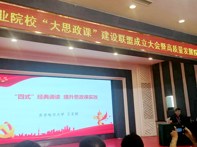 在会议期间,王圣祯以““四式”经典诵读 提升思政课实效”为题介绍了我校长期坚持的思政课经典诵读教学模式。