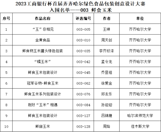 据了解,绿色食品包装创意设计大赛是中共齐齐哈尔市委宣传部为全面提高齐齐哈尔市农产品包装标识度和市场竞争力,打造精品农产品品牌形象所举办的比赛。大赛共设“齐齐哈尔烤肉产品”“鹅制品及其他禽类制品”“鲜食玉米”“酸菜”“稻谷产品”和“梅里斯特产”6个设计单元。自今年9月开赛以来,组委会收到来自北京、吉林、福建、山东、湖北、深圳及本省参赛作品共计983件,参赛者包括独立创意设计爱好者、专业设计机构从业人员及广大高校师生。