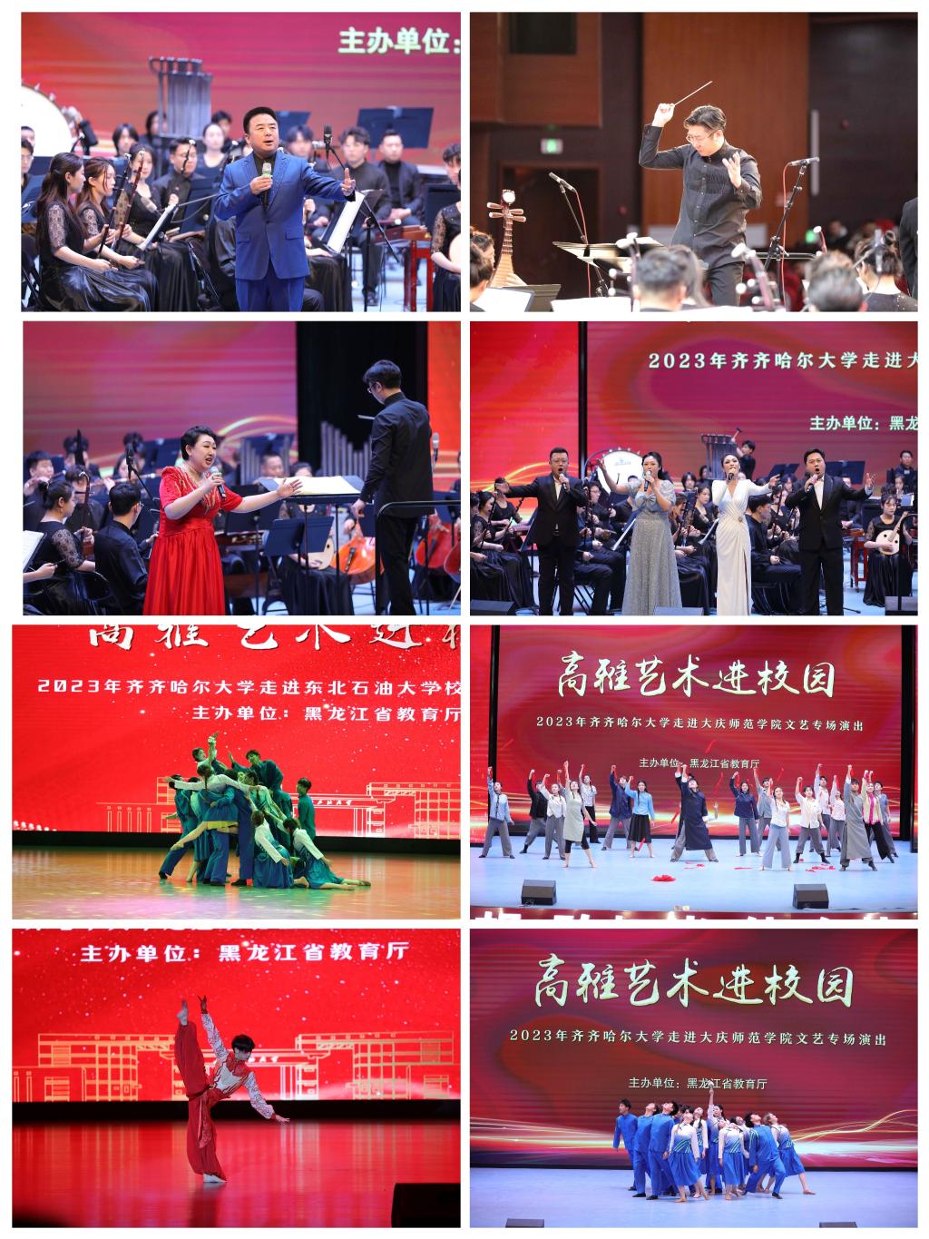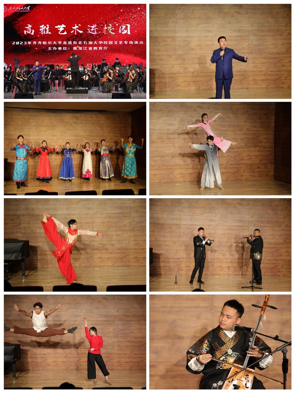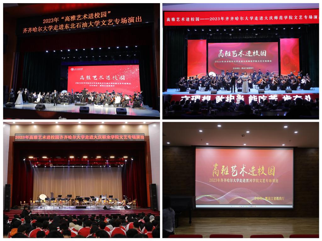 为深入学习贯彻党的二十大精神和习近平文化思想,按照省教育厅总体安排,12月3日至7日,校党委宣传部副部长何强与音乐与舞蹈学院院长蔡云凌带领学校民族交响乐团、舞蹈团百余名师生赴东北石油大学、黑河学院、大庆师范学院、大庆职业技术学院开展了四场“高雅艺术进校园”系列巡回演出。四所高校的3000余名师生共同欣赏了精彩绝伦、别开生面的专场音乐会。