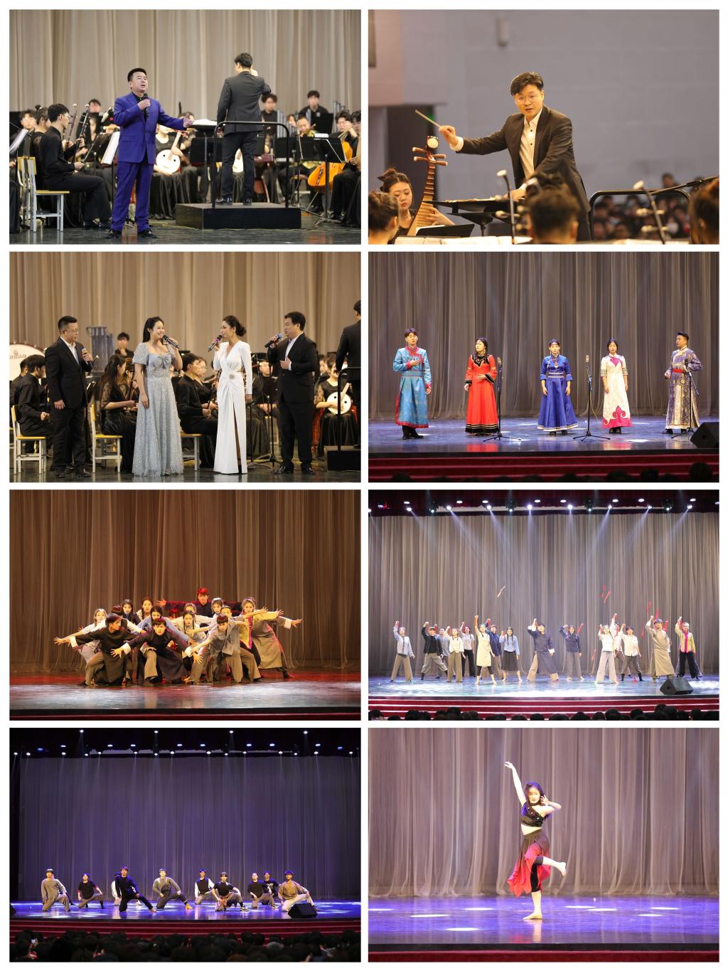 我校师生在此次巡演中,用扎实的艺术功底呈现了涵盖达斡尔族、维吾尔族、朝鲜族等具有民族风格的作品,表演形式包括男女声二重唱、四重唱,乐器演奏、独舞和群舞表演等,以积极向上的精神风貌,铸牢中华民族共同体意识,彰显共产党人坚定的理想信念和高尚的精神追求,达到了艺术教育“润物无声、育人无形”的良好效果。