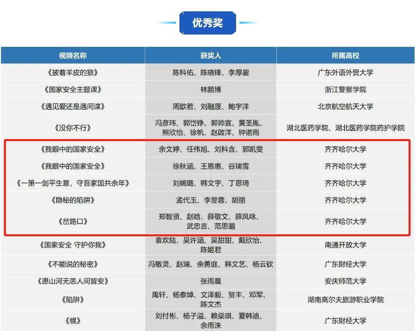近日,由北京师范大学发起题为“总体国家安全观·创新引领10周年之大学生眼中的国家安全”的首届大学生《我眼中的国家安全》视频征集活动获奖名单公布。活动开展以来,我校学生踊跃报名,共征集微视频作品30件。其中,学生获优秀奖5项,学校获优秀组织奖。
