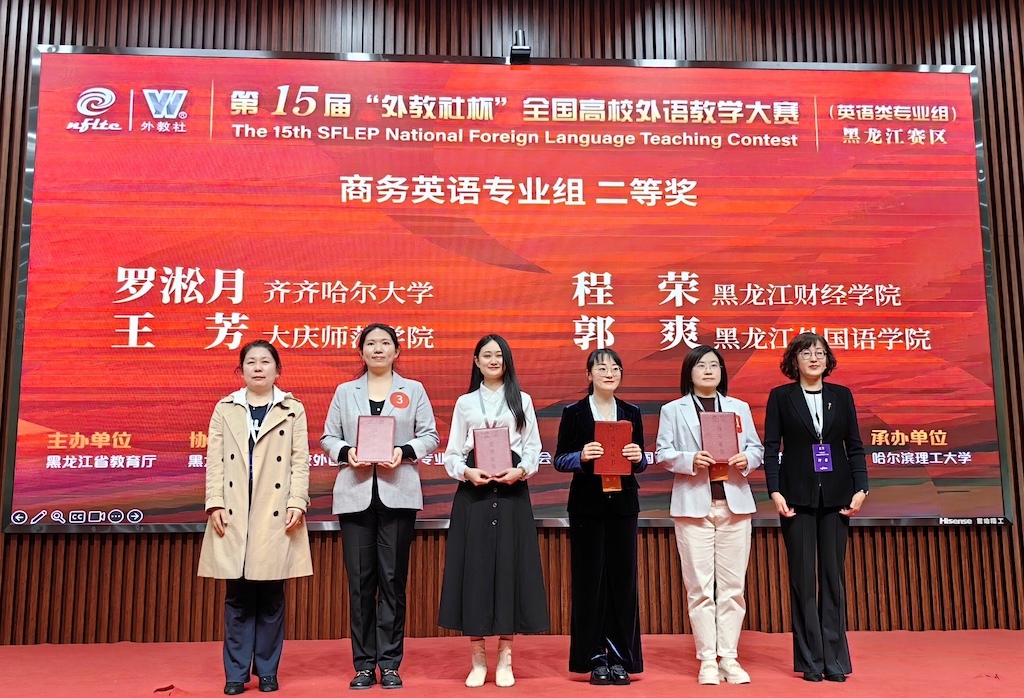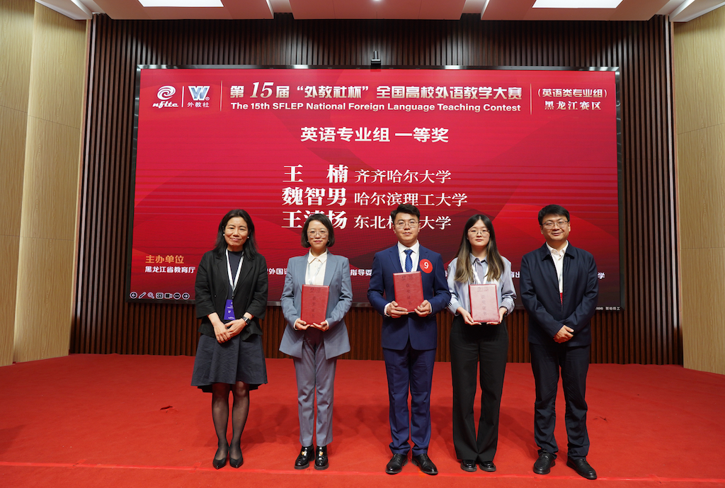 日前,由黑龙江省教育厅主办,黑龙江省高等学校外国语言文学类专业教学指导委员会、黑龙江省外国语学会和上海外语教育出版社协办,哈尔滨理工大学承办的第十五届“外教社杯”全国高校外语教学大赛(英语类专业组)黑龙江赛区决赛落下帷幕。经过激烈的角逐,来自全省各大高校英语专业组10位优秀教师和商务英语组7位优秀教师入围黑龙江赛区的决赛。最终,我校外国语学院教师王楠荣获英语专业组一等奖,青年教师罗淞月荣获商务英语组二等奖。