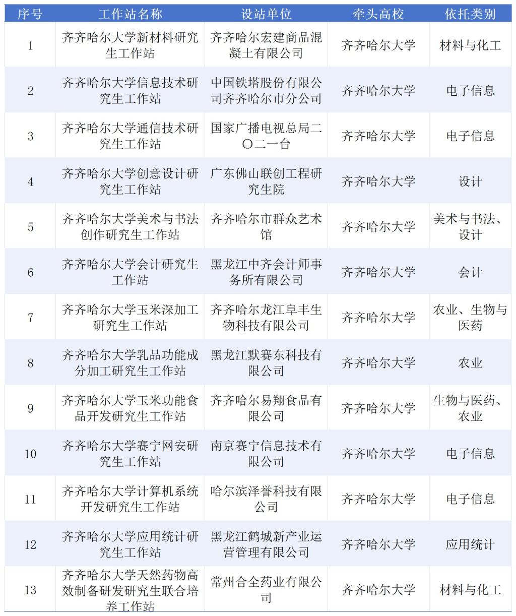 近日,黑龙江省教育厅公布了2024年度黑龙江省产教融合研究生工作站备案名单,我校申报的“齐齐哈尔大学新材料研究生工作站”等13个研究生工作站获批备案。截止目前,我校已有25个黑龙江省产教融合研究生工作站,其中,2023年我校入选首批黑龙江省产教融合研究生工作站12个,标志着我校在深化产教融合,与企事业单位联合开展研究生培养、科技创新、成果转化及服务区域经济社会高质量发展的能力持续增强。