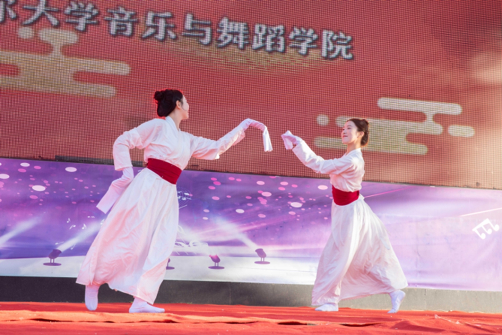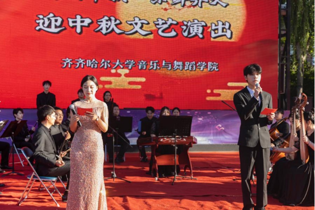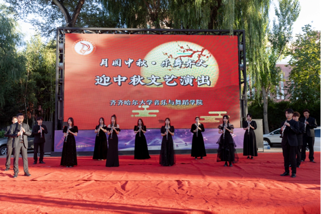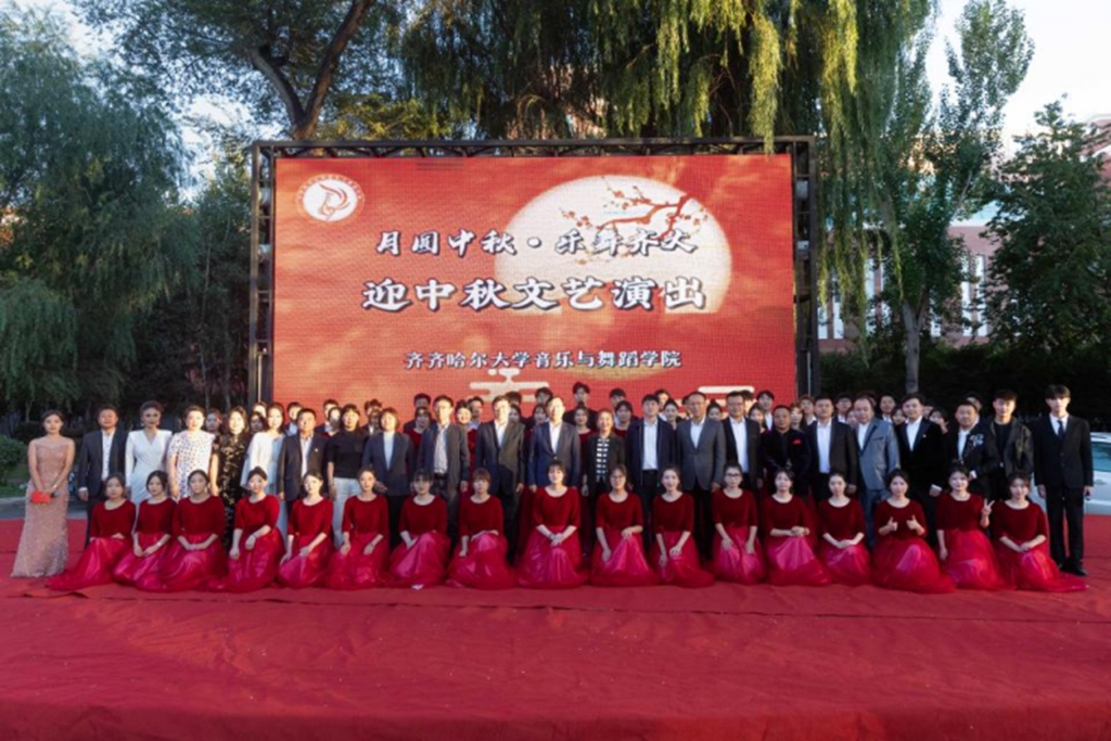 “万里无云镜九州,最团圆月是中秋。”为大力弘扬中华优秀传统文化,深入开展“我们的节日”系列实践活动,营造祥和、文明、欢乐的节日氛围,9 月 14 日下午16 时,学校在“三致广场”举办了“月圆中秋·乐舞齐大”迎中秋文艺演出。校党委副书记、校长郝文斌,校党委副书记齐宏伟、张文治,音乐与舞蹈学院领导班子及相关职能部门领导与学生们一起观看演出,共享温馨时刻。