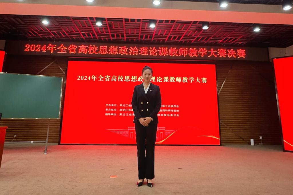 本次大赛由黑龙江省教育厅、黑龙江省教科文卫体工会委员会主办,省高校思想政治理论课教学指导委员会指导,省高校思想政治理论课教师培训和研修基地承办。全省高校262名思政课教师报名参赛,经过复赛环节,来自33所高校的60名教师进入决赛。参加决赛教师从10个备选专题中随机抽取展示专题,进行12分钟的现场展示。专家评委和学生评委根据教师授课情况,通过评分器为教师打分,现场公布成绩。我校杨麒平老师以稳健的发挥,较好的驾驭能力,长期高强度备赛,在校领导关怀下,在全院上下一致努力下,获得一等奖。