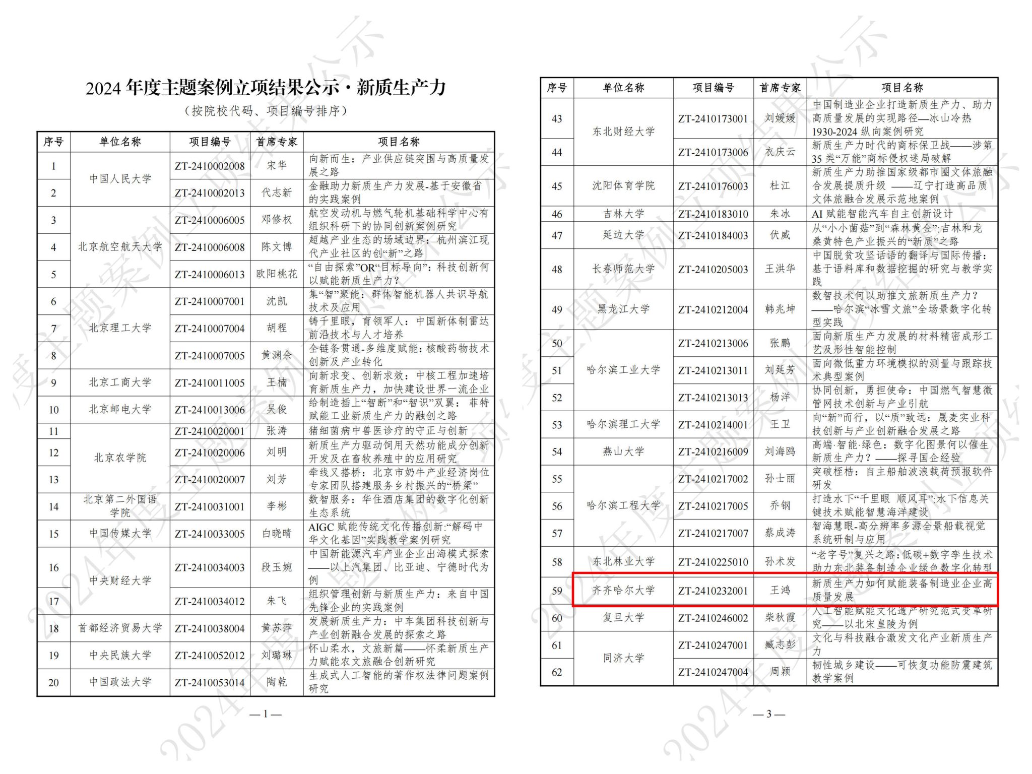 主题案例建设项目是教育部学位中心打造的案例研究品牌工程,通过汇聚具有时代性、引领性的实践成果,为专业学位研究生教育提供优质教学资源,强化科研创新与实践能力培养。学校此次获批项目,立足我校会计学位授权点培养方向,探索新质生产力如何通过财务管理、管理会计及财务会计赋能东北装备制造业企业高质量发展,将会计与新质生产力、实体经济深度融合,不仅为学科交叉研究提供新范式,更为专业学位研究生教学注入鲜活素材,项目成果将收录至“中国专业学位案例中心”国家级平台,服务于全国研究生培养单位。