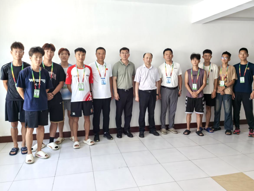 范铁明一行来到代表团驻地,详细询问队员们的住宿、餐饮、训练恢复及赛事安排等情况,对大家展现出的饱满精神和昂扬斗志表示高度赞赏,并与教练员、运动员们亲切交谈。他寄语参赛师生:“弘扬体育精神,严守赛风赛纪,坚定必胜信心,赛出齐大风采!”叮嘱参赛队员们,务必做好防晒降温等自我防护,要求体育学院全力做好后方支援,解决运动员后顾之忧,做代表团的坚强后盾。