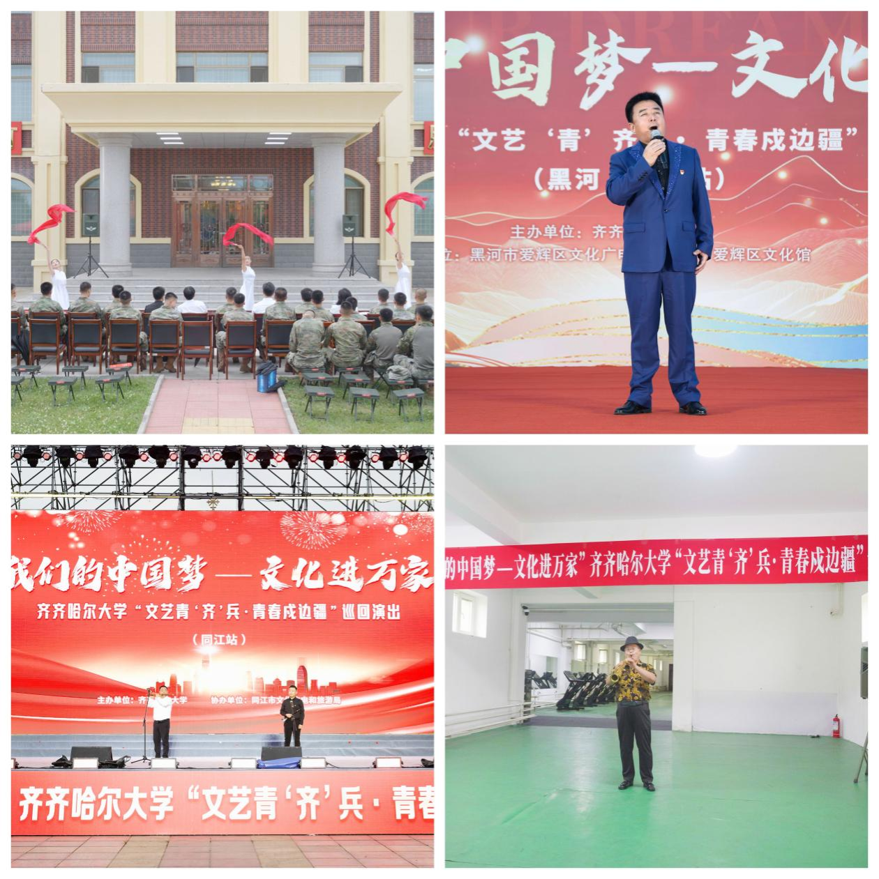 为深入贯彻落实党的二十大关于推进文化自信自强的战略部署,积极响应中宣部“我们的中国梦——文化进万家”活动号召,八一建军节前夕,学校党委宣传部、团委、音乐与舞蹈学院共同筹划,选拔部分党员师生和业务骨干,组建齐齐哈尔大学文艺青“齐”兵小分队,怀揣着对党的忠诚,开启了文化戍边暑期“三下乡”实践之旅,在祖国北疆漠河到抚远4300余公里的边境线上踏歌而行,用艺术传递党的声音,用文化凝聚民族共识,用真情歌颂军民情谊,谱写了一曲新时代文化戍边的青春赞歌。
