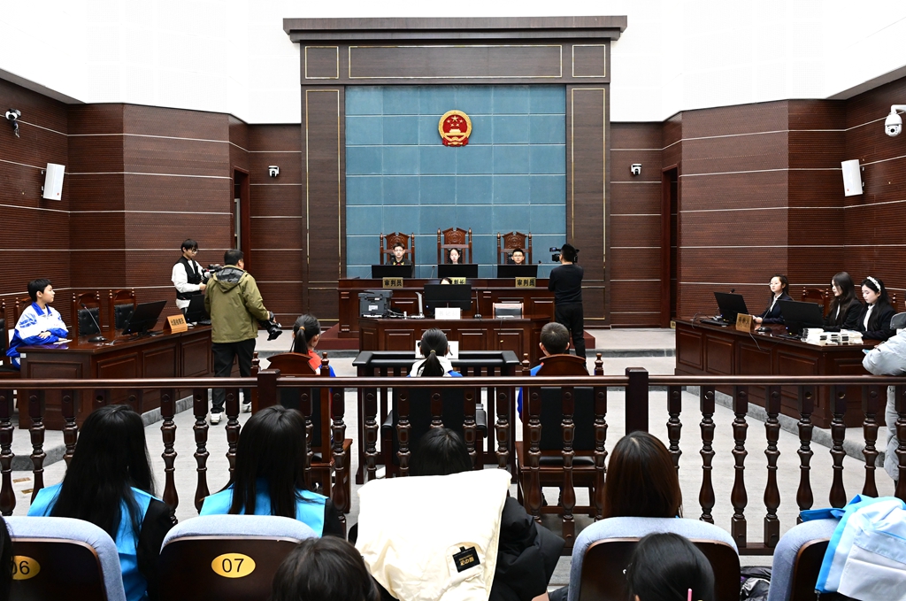 在模拟法庭环节,大、中、小三个学段的学生分饰“合议庭”“辩护人”和“当事人”等角色,共同演绎了案件审理的过程。小学组认真的发问,中学组条理清晰的陈述,大学组相对专业的辩论,奏响了一曲独特而和谐的“法治协奏曲”。这场跨龄的“青春说法”,将生硬的法律条文转化为生动的典型案例,不仅让同学们亲身体验了庭审的严谨与公正,更在协作中理解了法律事实认定、证据规则和程序正义的重要性,有效提升了学生们的法治素养。
