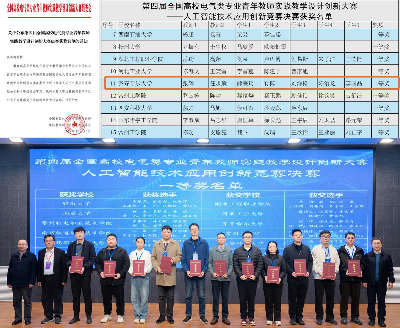 近日,由教育部高等学校电气类专业教学指导委员会、中国电工学会主办,温州大学等单位承办的第四届全国高校电气类青年教师实践教学设计创新大赛决赛隆重开赛。该项赛事是国内电气领域级别最高、影响力最广的青年教师教学竞赛之一,来自清华大学等全国222所高校的专家学者、青年教师及参赛师生代表共计1000余人齐聚温州,共同探索电气工程教育创新与人才培养质量提升的实践路径。我校计算机与控制工程学院张辉、任永斌团队凭借扎实的专业功底、创新的设计思路与出色的现场表现,从众多高水平参赛队伍中脱颖而出,荣获全国一等奖。