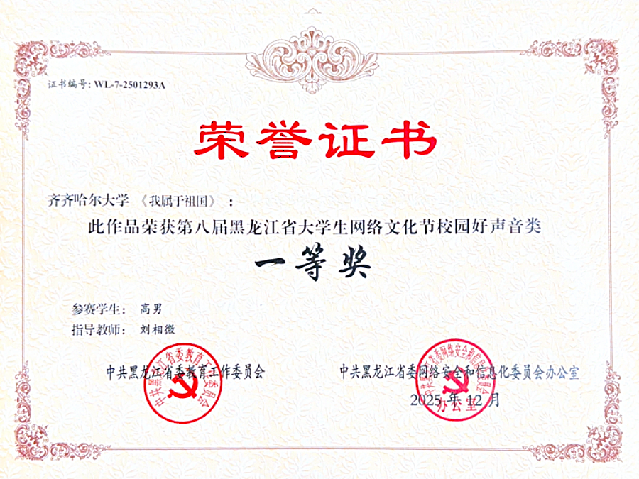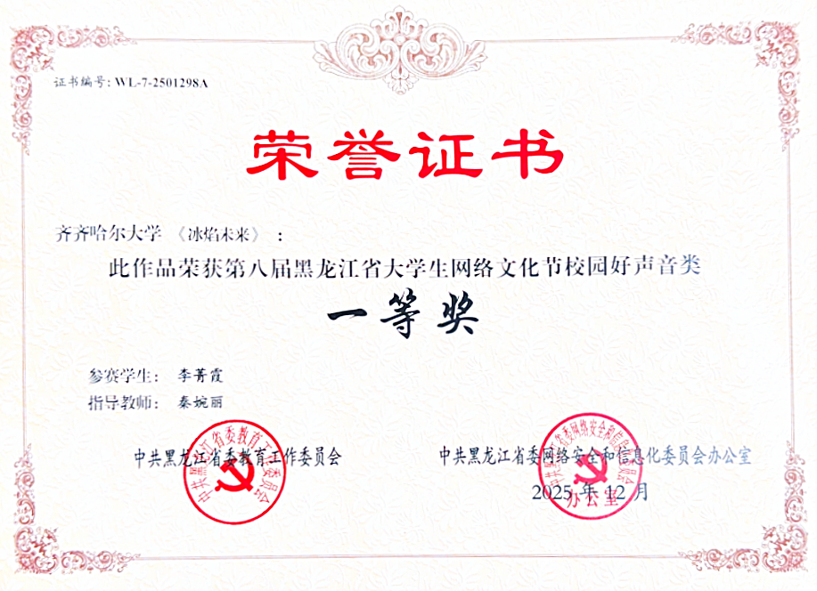 本次评选,我校共斩获一等奖2项、二等奖5项、三等奖17项。其中,音乐与舞蹈学院高男同学创作的原创歌曲《我属于祖国》,以及李菁霞同学创作的原创歌曲《冰焰未来》,双双荣获全省校园好声音类作品一等奖。