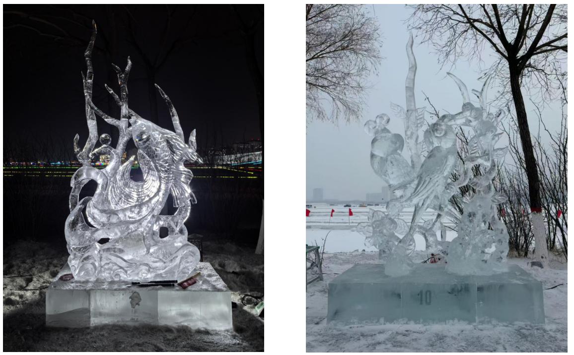 2025年12月23日,依托教育部中华优秀传统文化“冰灯冰雕制作技艺”基地(黑龙江大学),由省教育厅主办的第八届黑龙江省高校冰灯冰雕技艺大赛在大庆市圆满落幕。我校师生与来自全省19所高校的50支队伍同场竞技,作品《谁剪春绡画神鲤》荣获学生组三等奖,《绿鸟双栖戏锦花》荣获学生组最佳技巧奖。