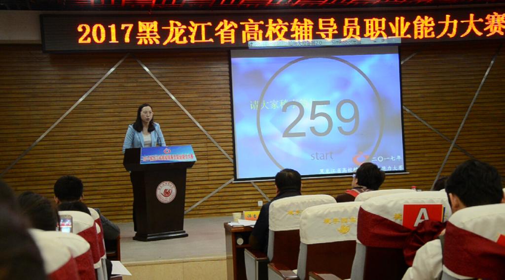 2017年黑龙江省高校辅导员职业能力大赛是由中共黑龙江省委高校工委宣传部、黑龙江省教育厅思政处主办,黑龙江省高教学会学生工作专业委员会和教育部高校辅导员培训与研修基地(哈尔滨师范大学)承办的一项全省赛事,共有来自全省56所高校的61名辅导员参赛。