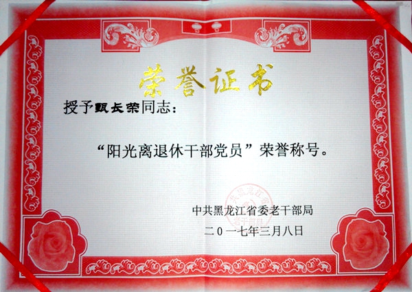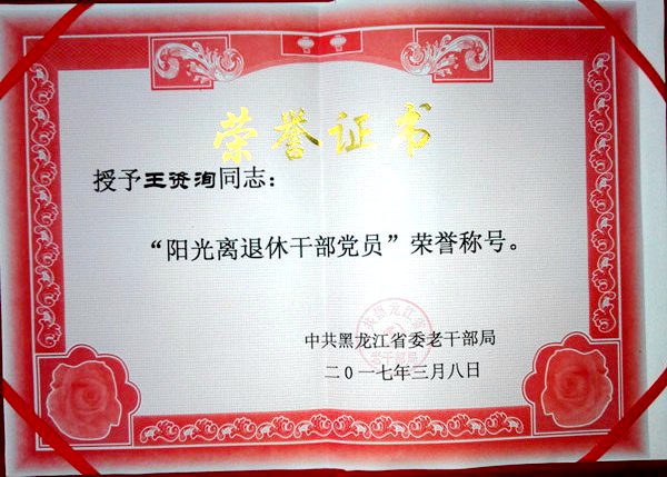 3月31日,全省老干部局长会议在哈尔滨召开,中共黑龙江省委老干部局对全省离退休干部党员进行了表彰,共有103人获得“阳光离退休干部党员”荣誉称号,我校退休老党员王资洵、甄长荣获此殊荣。