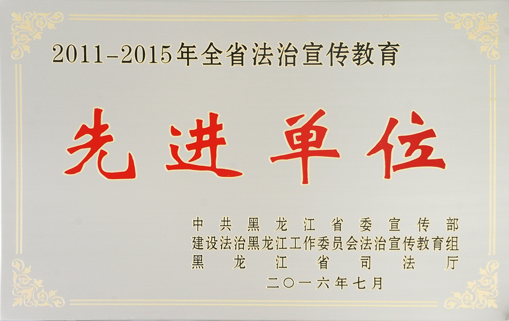 近日,我校被中共黑龙江省委宣传部、省司法厅授予“2011—2015年全省法治宣传教育先进集体”,被中共齐齐哈尔市委宣传部、市司法局授予“2011—2015年全市法治宣传教育先进集体”荣誉称号,依法治校工作取得了又一标志性成果。