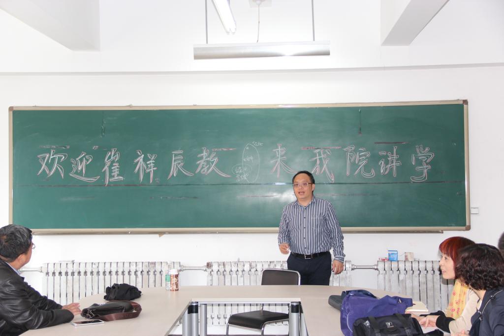 4月26日,台湾成功大学崔祥辰教授来我校进行学术访问。访问期间,崔教授做了题为“高校国际化与台湾文化特点”的讲座,并与我校国际教育学院的专业教师就专业发展相关的内容进行了座谈,国际教育学院院长王则远,副书记、副院长孙海丽,副院长谢晓丰及全体教师参与研讨。